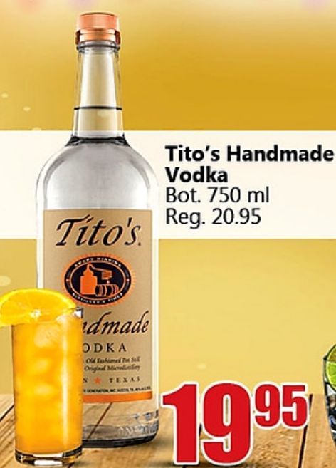 tito's handmade vodka reg. dmade odka tuimel original micululley texas