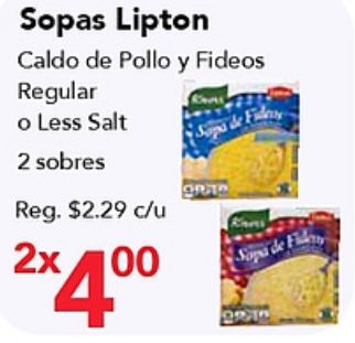 sopas lipton caldo pollo fideos regular less salt sobres $c/u sapa sput sopa