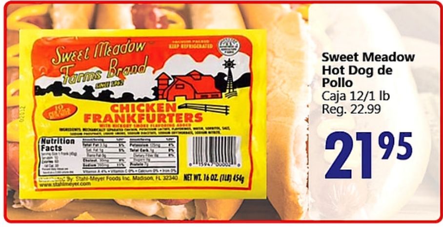 sweet meadow farms brand nutrition facts keep refrigerated chicken frankfurters with hickory smoke flavoring added stahl-meyer foods madison himeyer.com pollo caja reg.