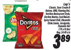 doritos pacho cheese lay's classic sour cream onions, bbq, flaming hot, tostitos restaurant style, nacho, cool ranch, spicy sweet chill, dinamita chile limón, incógnita, flammin $c/u