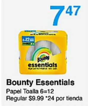 bounty essentials papel toalla regular $*por tienda