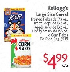 large size frosted flakes corn kellogg's cereal froot loops apple jacks honey smack reg. $flakes