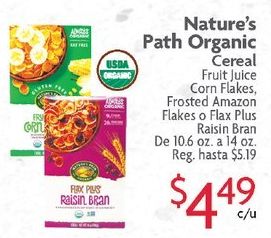 corn usda organic plus raisin bran nature's path cereal fruit juice flakes frosted amazon flax reg.