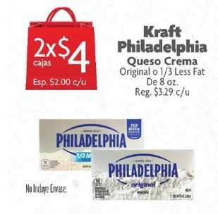 x$cajas $c/u kraft philadelphia queso crema original /less reg. incluye envase
