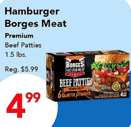 hamburger borges meat premium beef patties reg. $borges five star uter
