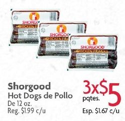 shorgo thickene shorgog eckener shorgood chicken frank dogs pollo reg. $c/u x$pqtes. esp.