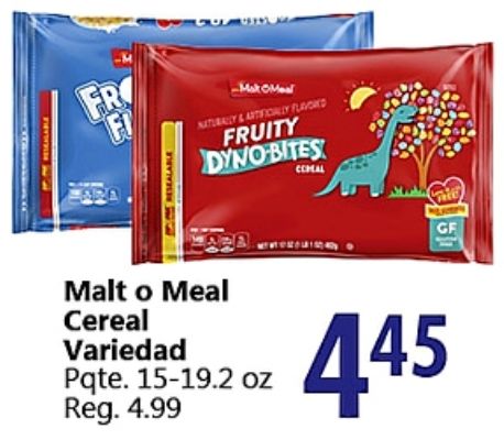 naturaly artifically flavored fruity dyno-bites comeal malt meal cereal variedad pqte reg.