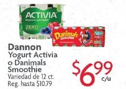 activia zero dannon yogurt danimals smoothie variedad reg. $danimal's