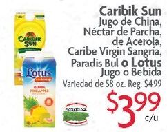 caribik jugo china néctar parcha, acerola, caribe virgin sangría, paradis lotus bebida variedad reg.