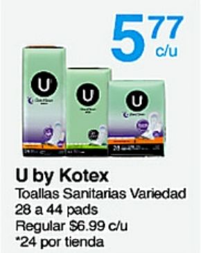 kotex toallas sanitarias variedad pads regular $c/u *por tienda