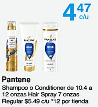 pantes pantene shampoo conditioner onzas hair spray regular $c/u *por tienda
