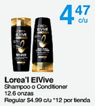 elvive lorea'l shampoo conditioner onzas regular $c/u *por tienda