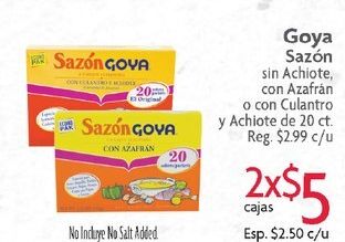 sazón goya gova azafran incluye salt added achiote azafrán culantro reg. $c/u x$cajas esp.