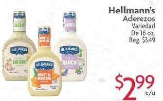 caesa ranca hellmann's caesar bellmann's ranch honey& mustard aderezos variedad reg.