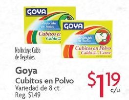 gova incluye caldo vegetales sodio cubitos reducido polvo carne goya variedad $reg.