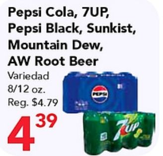 pepsi cola black, sunkist, mountain dew, root beer variedad reg.