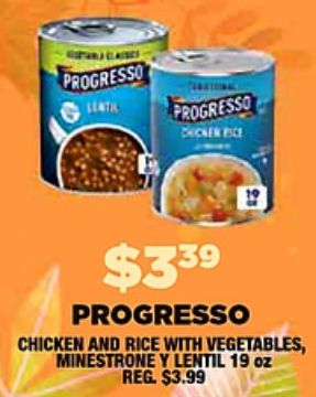 progresso decker bice $progresso chicken rice with vegetables minestrone lentil