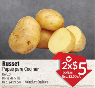Russet papas para cocinar de U.S bolsa de 5 lbs.