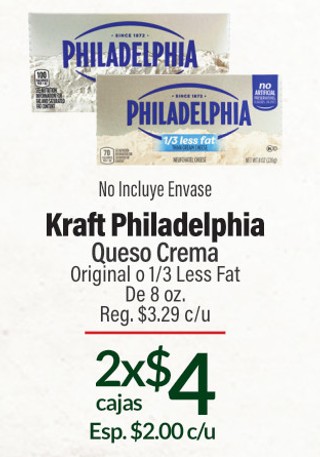 Kraft Philadelphia Queso Crema Original o 1/3 Less Fat De 8 oz.