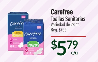 Carefree Toallas Sanitarias Variedad de 28 ct. Reg. $7.99