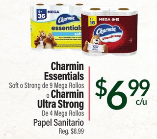 Charmin Essentials Soft o Strong de 9 Mega Rollos Charmin Ultra Strong De 4 Mega Rollos Papel Sanitario.