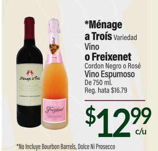 *Ménage a TroÃs Variedad Vino o Freixenet Cordon Negro o Rosé Vino Espumoso De 750 ml.