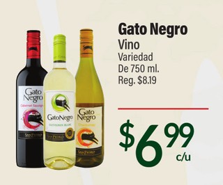 Gato Negro Vino Variedad De 750 ml. Reg. $8.19
