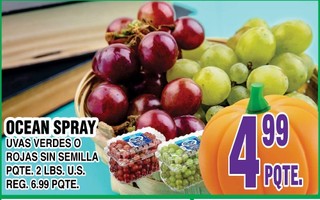 Ocean spray uvas verdes o rojas sin semilla pqte. 2 lbs. u.s.