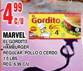 Marvel el gordito hamburger regular, pollo o cerdo 1.5 lbs.