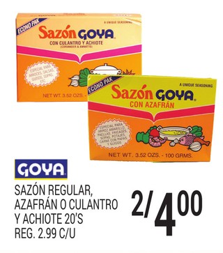 GOYA SAZON REGULAR, AZAFRAN O CULANTRO Y ACHIOTE 20'S