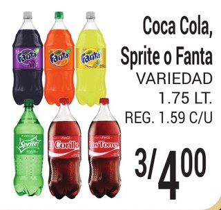 Coca Cola, Sprite o Fanta VARIEDAD 1.75 LT.