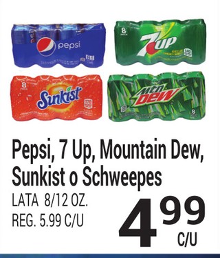 Pepsi, 7 Up, Mountain Dew, Sunkist o Schweepes LATA 8712 OZ.