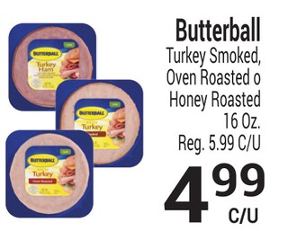 Butterball Turkey Smoked, Oven Roasted o Honey Roasted 16 oz.