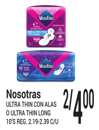 Nosotras ULTRA THIN CON ALAS O ULTRA THIN LONG 10'S