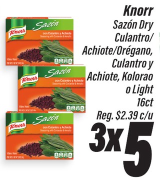 Knorr Sazón Dry Culantro/Achiote/Orégano, Culantro y Achiote, Kolorao o Light 16ct.
