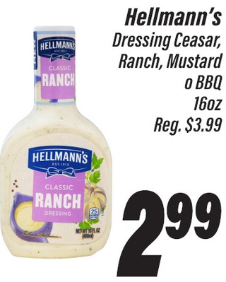 Hellmann's Dressing Ceasar, Ranch, Mustard o BBQ 16oz