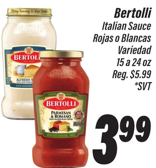 Bertolli Italian Sauce Rojas o Blancas Variedad 15 a 24 oz