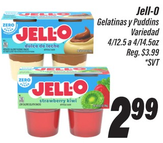 Jell-O Gelatinas y Pudding Variedad 4/12.5 a 4/14.5oz