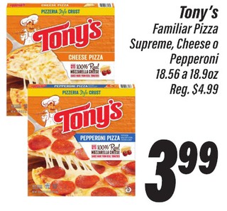 Tony's Familiar Pizza Supreme, Cheese o Pepperoni 18.56 a 18.9oz