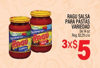 RAGU SALSA PARA PASTAS VARIEDAD De 14 oz Reg. $2.29 c/u