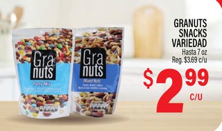 GRANUTS SNACKS VARIEDAD Hasta 7 oz.