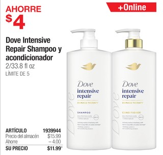 Dove intensive repair shampoo y acondicionador 2/33.8 fl oz.