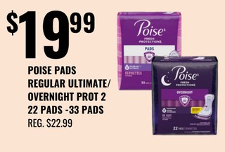 POISE PADS REGULAR ILTIMATE/ OVERNIGHT PROT 2 22 PADS - 33 PADS