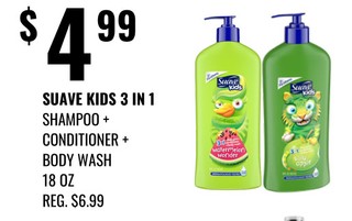 SUAVE KIDS 3 IN 1 SHAMPOO + CONDITIONER + BODY WASH 18 OZ.