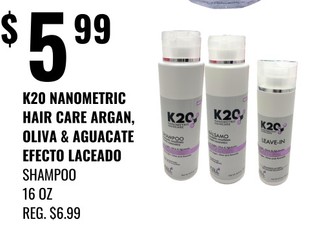 K20 NANOMETRIC HAIR CARE ARGAN, OLIVA & AGUACATE EFECTO LACEADO SHAMPO 16 OZ.