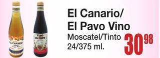 El Canario/El Pavo Vino Moscatel/Tinto 24/375 ml.
