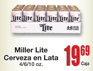 Miller Lite Cerveza en Lata 4/6/10 oz.