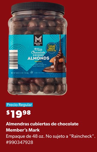 Almendra cubiertas de chocolate Member's Mark Empaque de 48 oz.