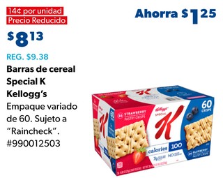Barras de cereal Special K Kellogg's Empaque variado de 60.