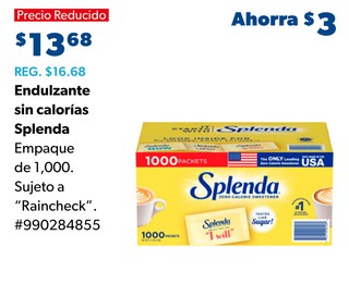 Endulzante sin calorÃas Splenda Empaque de 1.000